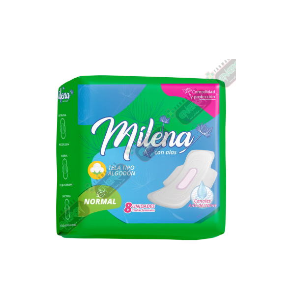 MILENA TOALLA HIG. NORMAL ALGODON C/ ALAS X 8 UN